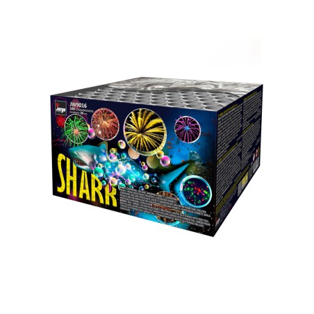 Spettacolo con comete rosse e verdi e scia argento, aperture viola e bianco glitter, foglie cadenti multicolore, fischi e finale crepitante.